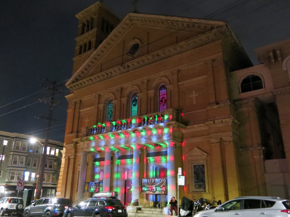 Saturday night disco fever is back in San Francisco. Far away from the touristic and spotlighted attractions, I discovered and enjoyed a roller disco party hidden in an unexpected place: a church. Oh, My God, I will confess below about the day I rollerbladed in a church!