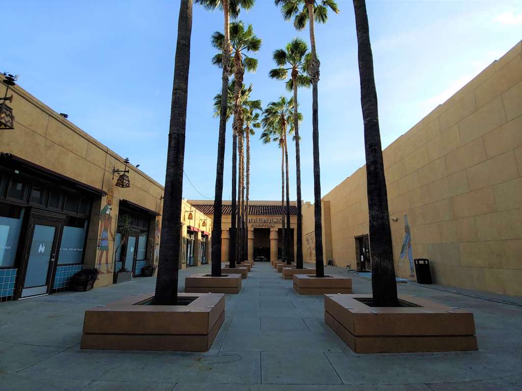 Hollywood Boulevard includes multiple souvenirs shop, bars, and restaurants. The largest shopping area is the Babylon Court next to the Dolby Theater. The massive pachyderms and Babylon décor are inspired by The 1916 silent film Intolerance.