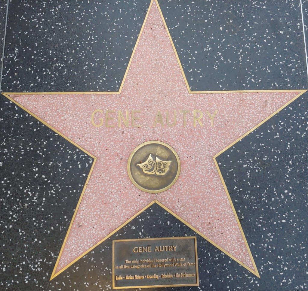 (Gene Autry’ stars location: Radio: 6520 Hollywood Blvd, Recording: 6384 Hollywood Blvd, TV: 6667 Hollywood Blvd, Live Performance: 7000 Hollywood Blvd, and Motion Pictures: 6644 Hollywood Blvd)