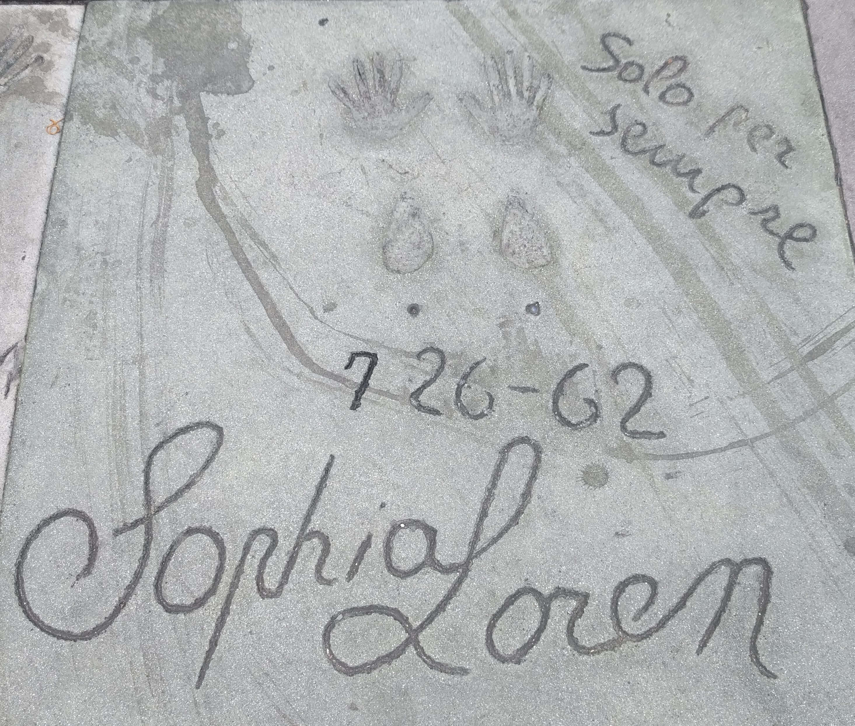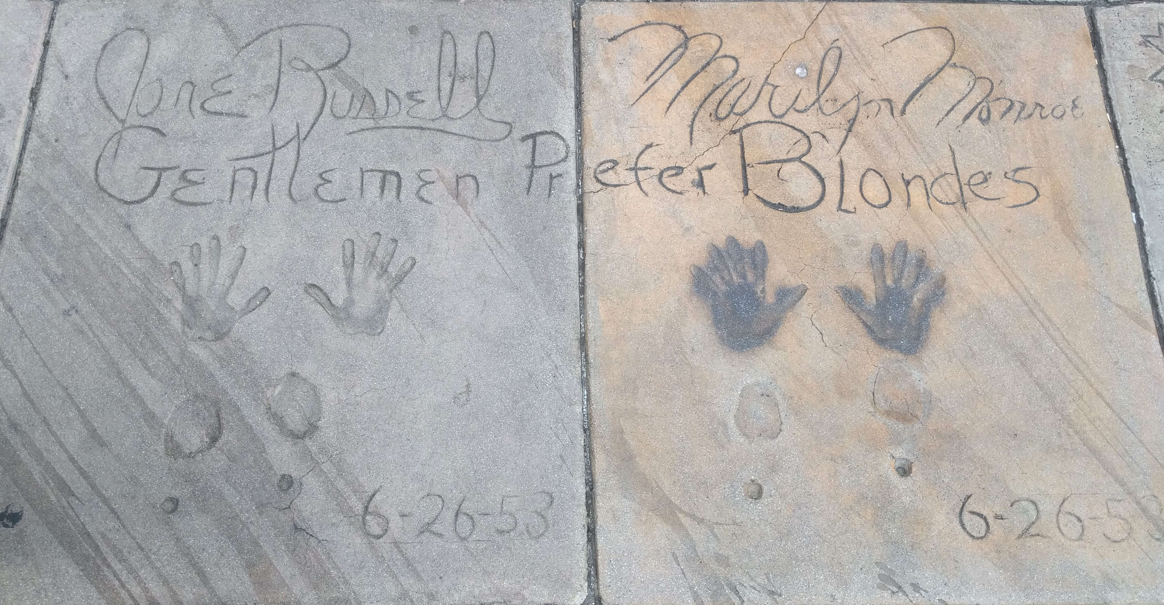The forecourt immortalizes nearly 200 celebrities’ handprints and footprints. Theater co-owners Mary Pickford was the first to officially press palms on the wet cement.