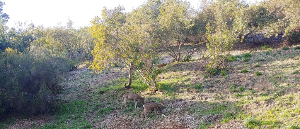 Keep your eyes open to observe animals – birds, snakes, and deer – either behind the fence or on the hills.