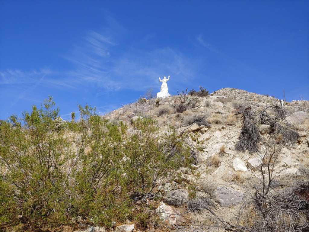 Reverend Garver welcome the statue on Easter 1951. The transportation from Inglewood to the Yucca Valley of this ten-foot-high Jesus bring media attention and attracted many onlookers.