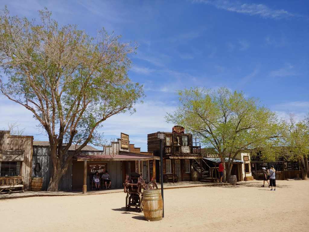 The desert landscape and the proximity to Hollywood (2 and half hour drive) and Palm Spring (Movies stars getaway) make it a perfect filming location for Westerns. The movie set includes not only storefronts but also functional businesses. The town extended with the golden age of the western and attracts many productions and tourists.