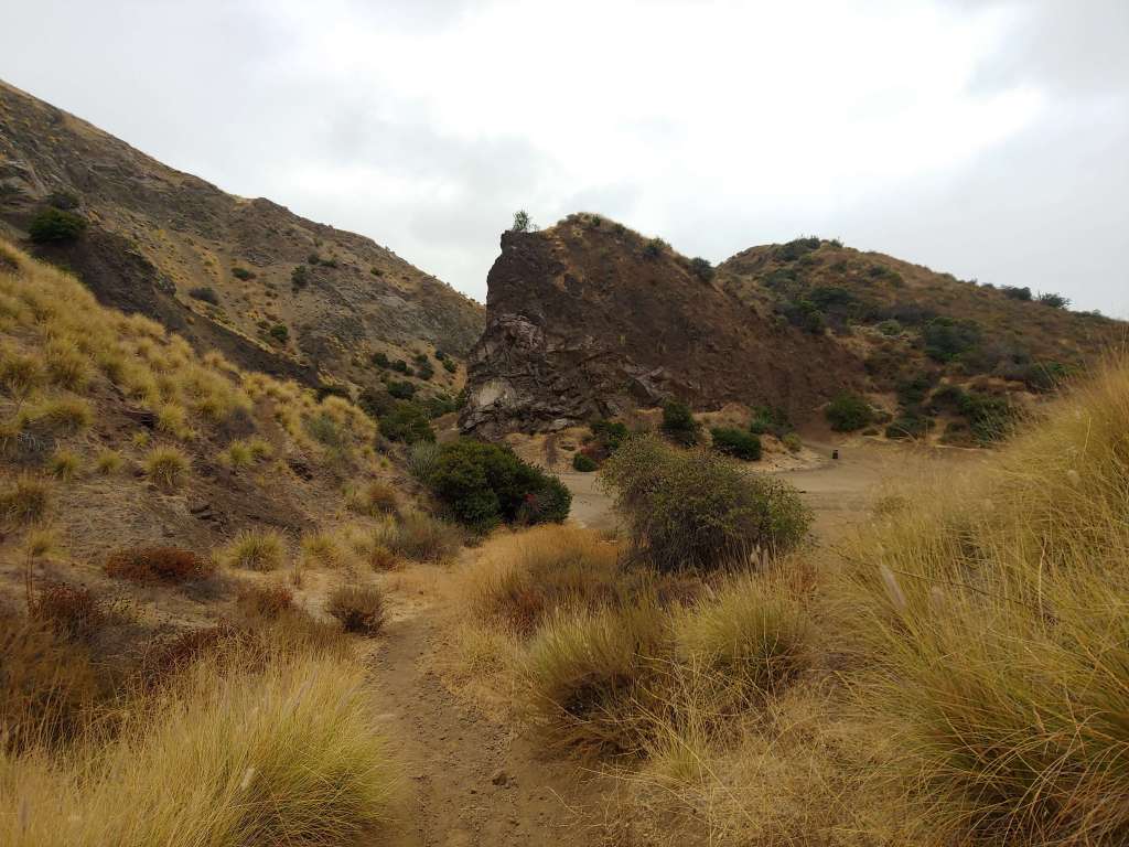 On the other side, you will see marks of the previous quarry. Indeed, from 1903 to the late 1920s, the site was a large rock quarry operated by the Union Rock Company. They crushed rocks to supply street construction in Los Angeles and railways.