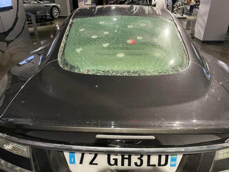 The below Aston Martin DBS shows how James Bond pulverizes his cars during chase scenes. For “Quantum of Solace,” the production damaged seven similar cars: bullet holes, missing doors, and many scratches.
