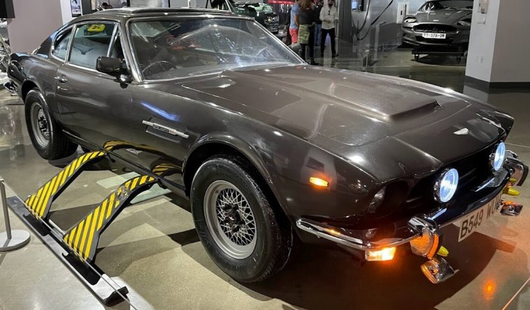 Aston Martin V8 with hydraulic outrigger skis was built especially for the Bond movie “Living Daylights” with Timothy Dalton.