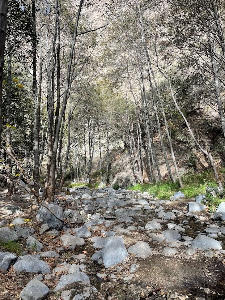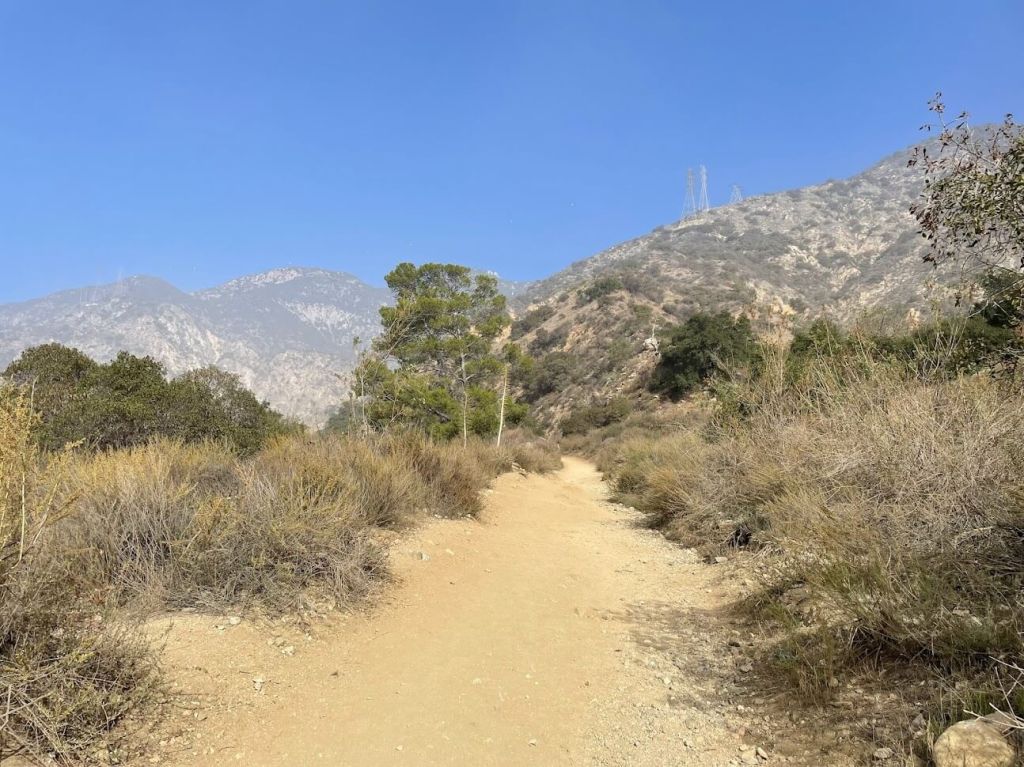 The first mile is not the most scenic as you walked on a sandy trail along the dry creek bed. Quickly you will see the San Gabriel Mountains.