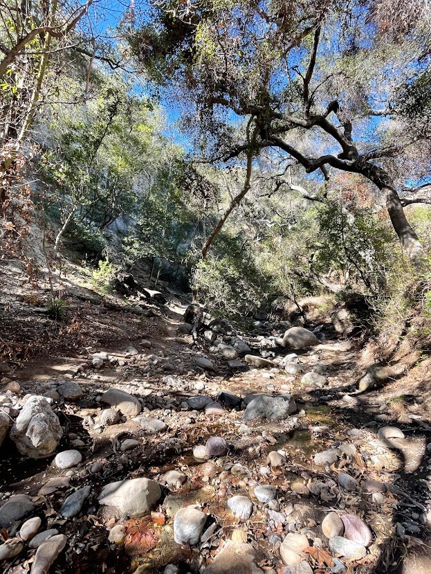 The shaded path is easy and agreeable. It’s a quiet and relaxing environment with a few hikers (it’s not the most popular hike in Los Angeles). In 1.5 miles, you reach the waterfall.