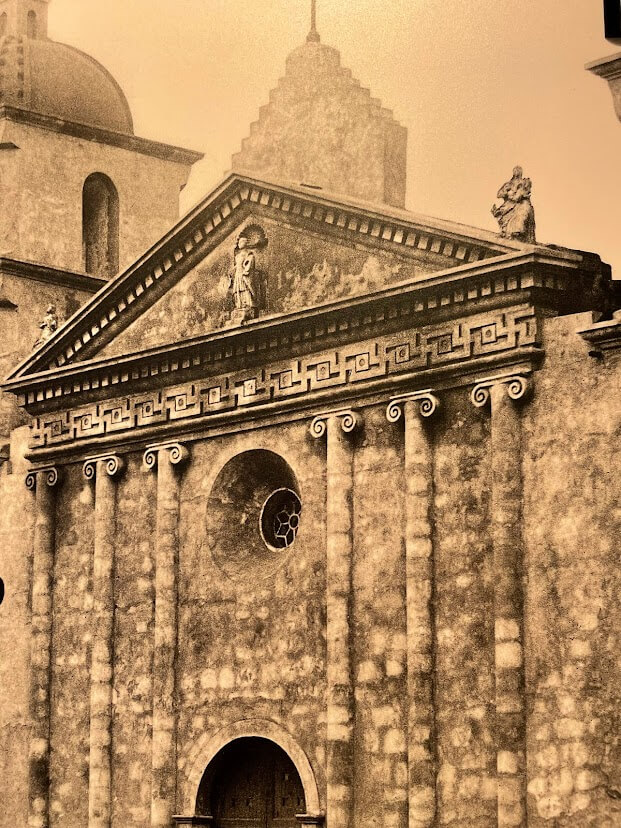 Look closely at the picture below. The skull and crossbones carving above the door symbolize funeral practices in early Christianity: “all earthly things are transitory, [and that] the salvation of the soul is most important.” [source: Santa Barbara Museum].