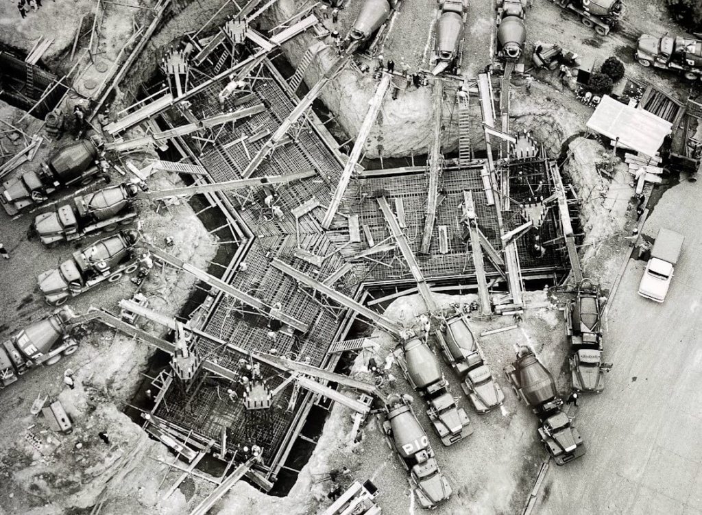 #5 During the construction, 467 trucks delivered 5,600 tons of concrete daily.