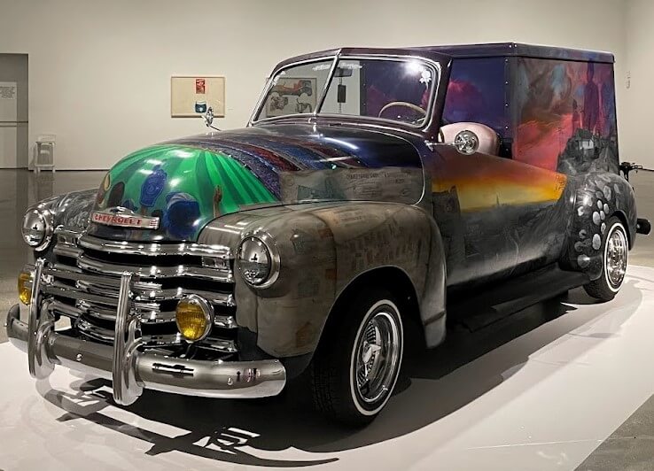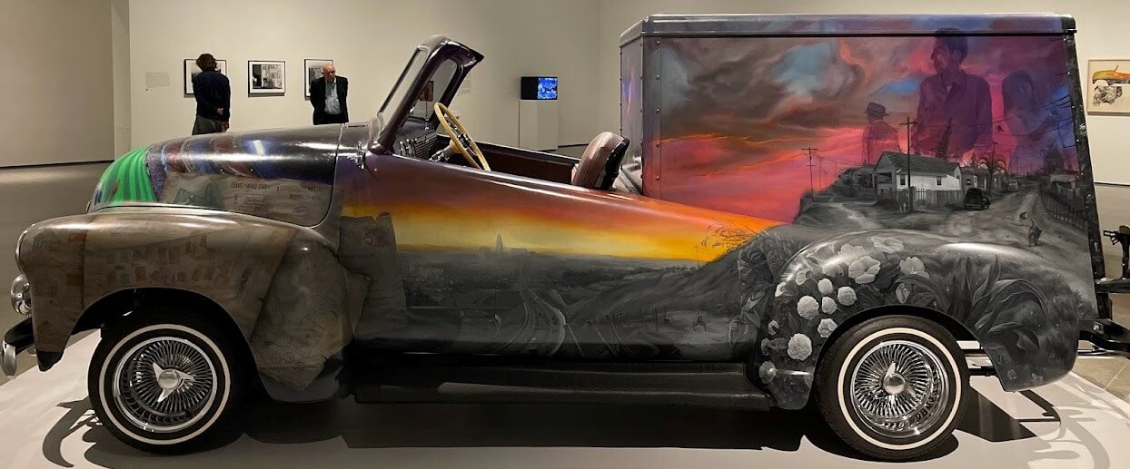 Vincent Valdez and Ry Cooder: El Chavez Ravine is the collaboration between musician Ry Cooder and painter Vincent Valdez. For his album “Chavez Ravine” (2005), Ry Cooder paid tribute to the former Chicano community from present-day Elysian Park. Vincent Valdez customized a 1953 Chevrolet ice cream truck to illustrate Cooder’s musical interpretation of this neighborhood. Together, they highlighted social injustice and gentrification in Los Angeles.