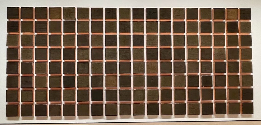 Focusing on migration, artist Jackie Amezquita mixed soil from 144 L.A. neighborhoods with masa (corn dough) and other materials to present 144 slabs. Each of them represents specific sites or life events.