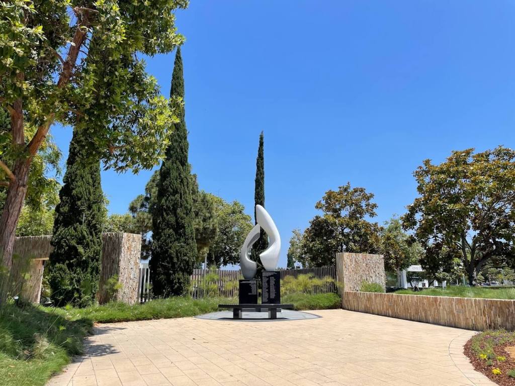 Designed by artist Kathleen Caricof, the first sculpture is a tribute to the victims of the 1986 airplane collision over a residential area in Los Cerritos.