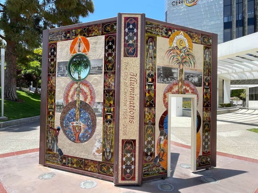 Don’t miss the ten-foot-tall open book standing at the library’s entrance. This Byzantine mosaic sculpture, titled “Illumination,” was designed in 2006 by artist Terry Braunstein. It symbolizes education, culture, and the Tree of Life.