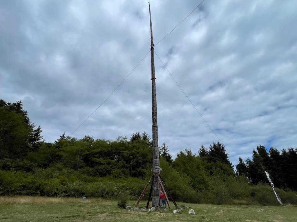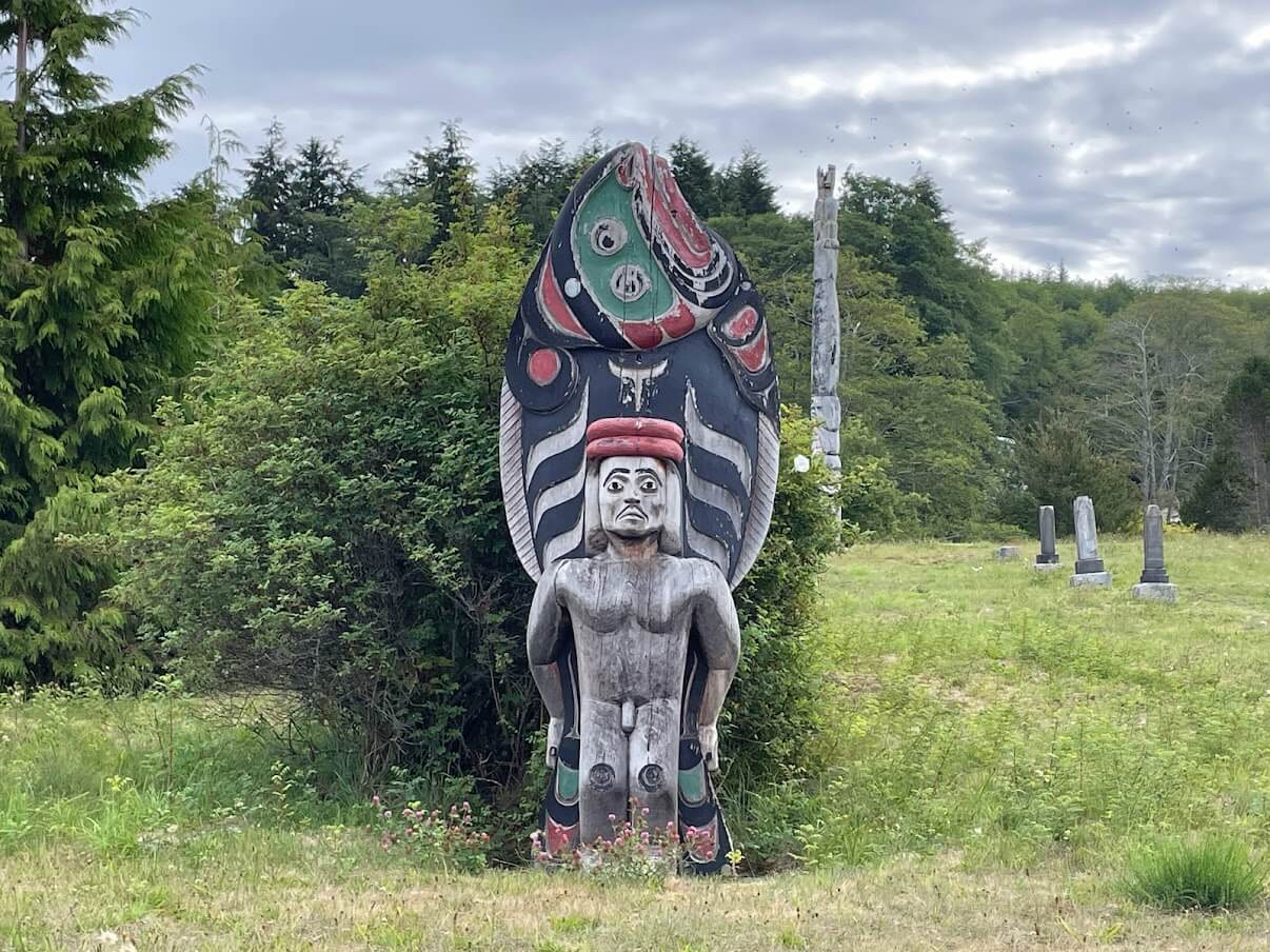 Completed in the late 60’s by chief carver Jimmy Dick, the 173 feet tall totem pole is the tallest in the world. The carved figures represent the tribes of the Kwakwaka.