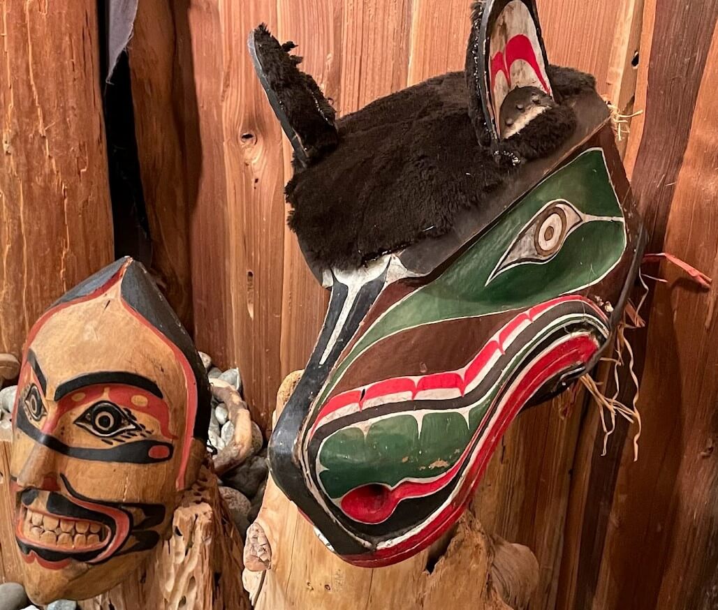 These ceremonial objects – carved masks, coppers, and hats – are sacred. It depicts tradition, family dances, songs, and stories. It’s a must-see to learn about Potlatch, and the U’mista Cultural Center is the most incredible collection I have seen in Alaska and Canada.