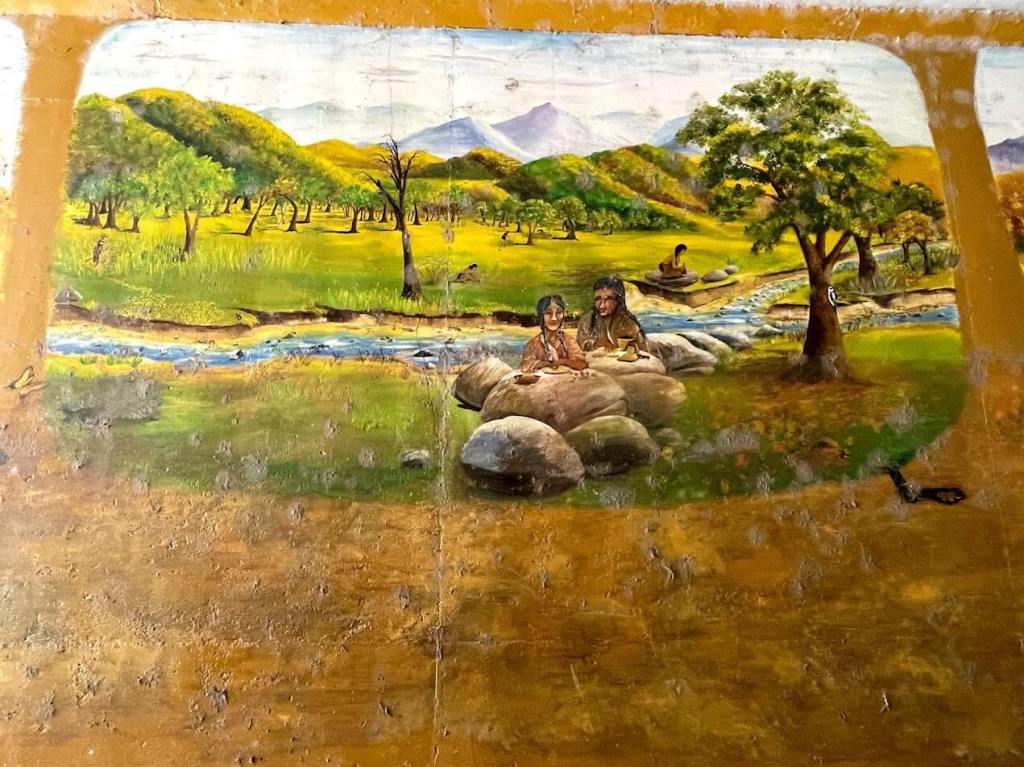 Situated on the channel wall between the Nature Center and the Golden Oak, the Placerita mural spans over 48 feet. In 1976, Rudy Pavini traded his naturalist attire for artist’s tools to create six large panels that depict the park’s rich history.