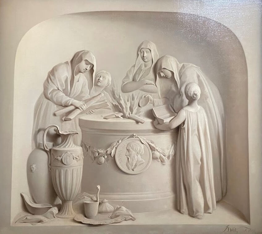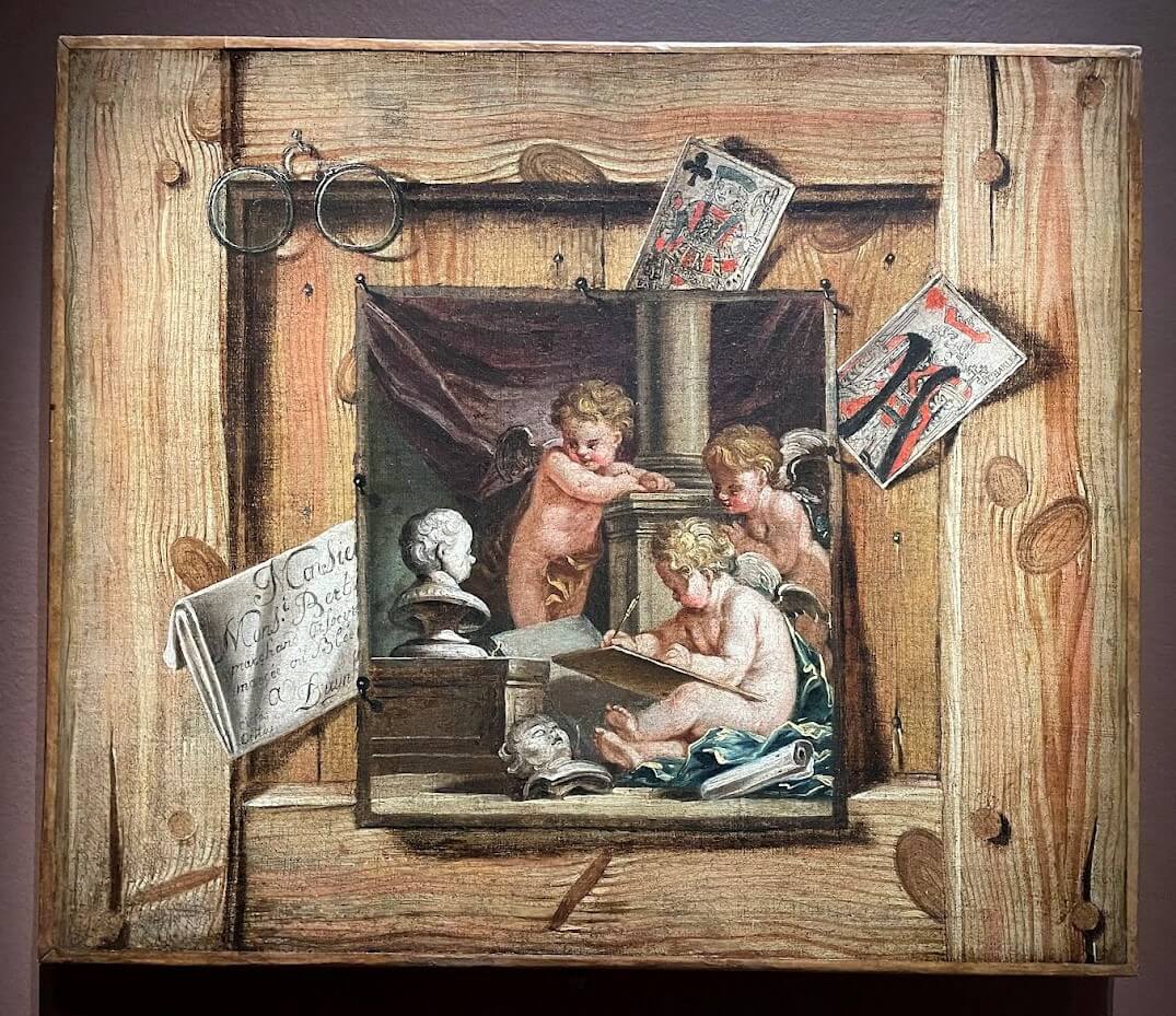 In the 18th century, multiple themes and additional mediums emerged. Wealthy households commissioned hunting trophy paintings, while grisailles—shades of grey paintings that simulate the appearance of sculptures—also gained popularity. Additionally, the art of ceramic trompe-l’oeil extended across Europe, featuring functional ceramic wares decorated with fruits, vegetables, or animals.