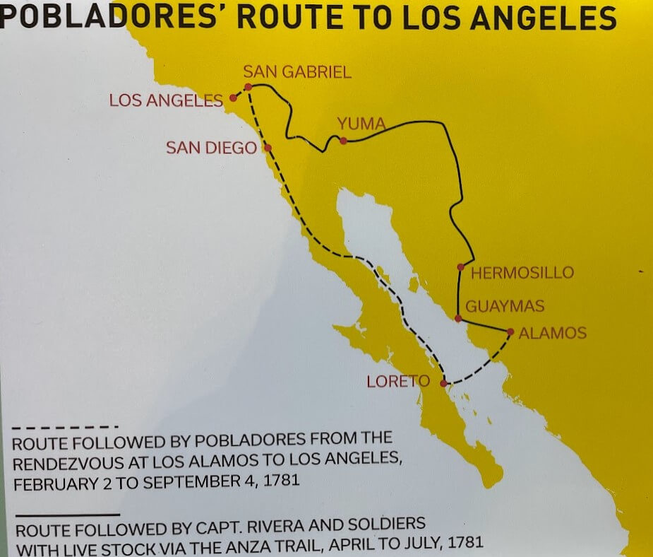 It took two years for Felipe de Neve to gather 44 people to move from Mexico to the Los Angeles area. Promising lands and tax exemptions, these Spanish Pobladores (citizens) established the Pueblo of Los Angeles in 1781.