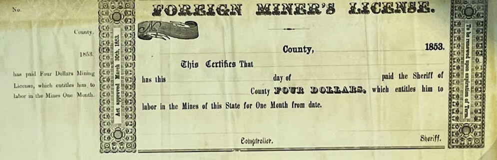 Regrettably, the increased diversity from the influx of gold seekers significantly heightened discrimination, marginalization, and racial hierarchies. White American politicians enacted laws that barred non-whites from mining gold and carrying arms. As an example, the Foreign Miners’ Tax of 1850 imposed a monthly tax of $20 on foreign miners. It was later modified to exempt “free white persons.”