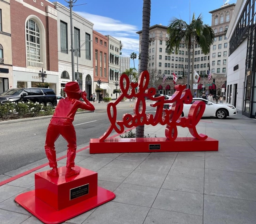 Just a short stroll away on Rodeo Drive, the second piece, Life is Beautiful, features a sculpted figure photographing the phrase, encouraging tourists to step into the scene and picture themselves as part of the art.